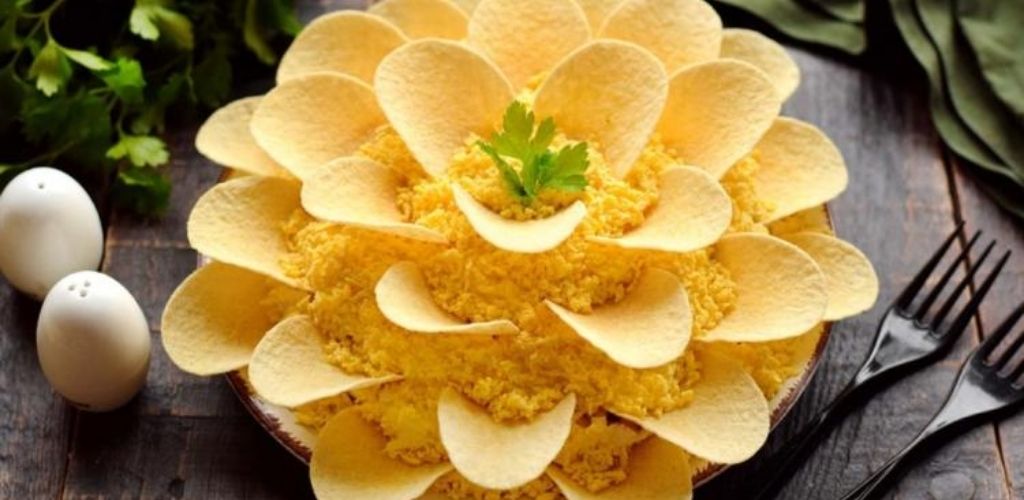 Цей салат точно приверне увагу ваших гостей. З вигляду він дійсно нагадує квітку, а пелюстки створюються з картопляних чіпсів. До складу салату входить мінімальна кількість […]
