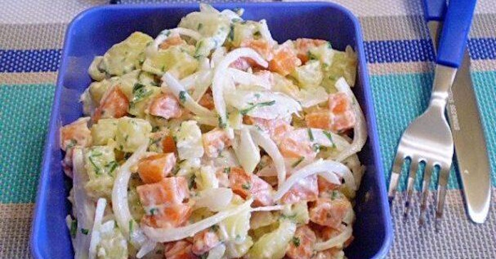 Простий і ситний салат з доступних продуктів, які завжди є під рукою. Овочі спочатку відварюються, потім нарізаються кубиками і заправляються сметаною або майонезом. Приготуйте салат […]