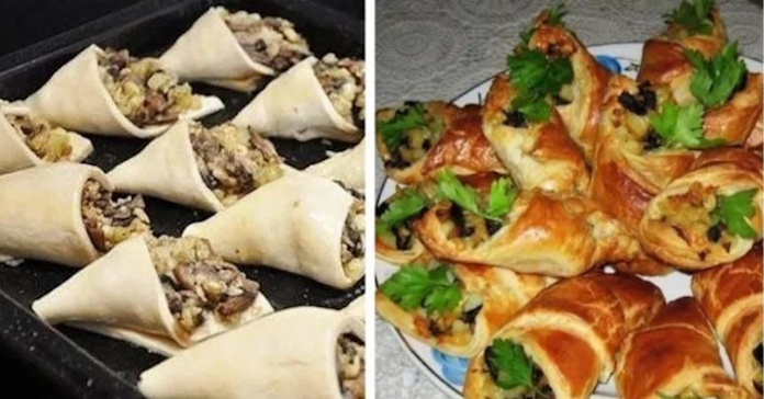 Смачна закуска з листкового тіста з грибною начинкою