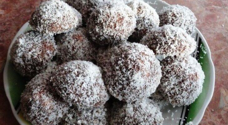 Для глазурі змішуємо всі інгредієнти і варимо масу до густоти. Вмочувати кульки потрібно в теплу глазур, обвалюємо в кокосовій стружці, тертих вафлях або подрібнених горіхах.