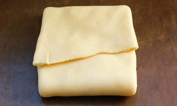 Складіть краї пласта до центру, потім загорніть нижню та верхню частину — як класичне листкове складання.