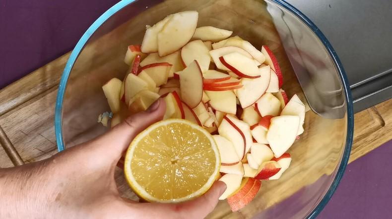 Перекладіть у миску та полийте лимонним соком, щоб вони не потемніли.