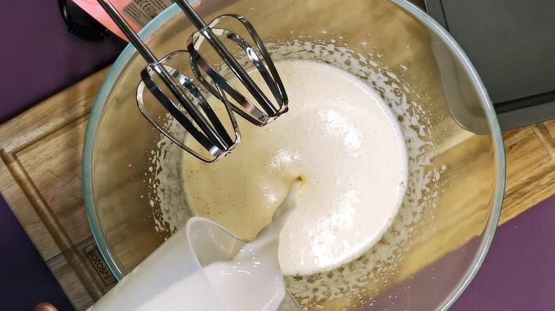 Влийте молоко та знову збийте масу ще близько 30 секунд.