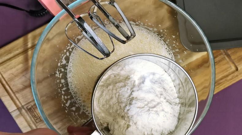 Просійте борошно до рідкої маси та збийте ще 1 хвилину до однорідності.
