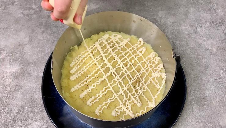 Додаємо трохи перцю і наносимо тонку майонезну сіточку.