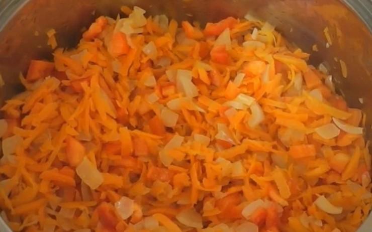 Моркву натерти на великій тертці або нарізати кружечками, напів кружечками.
