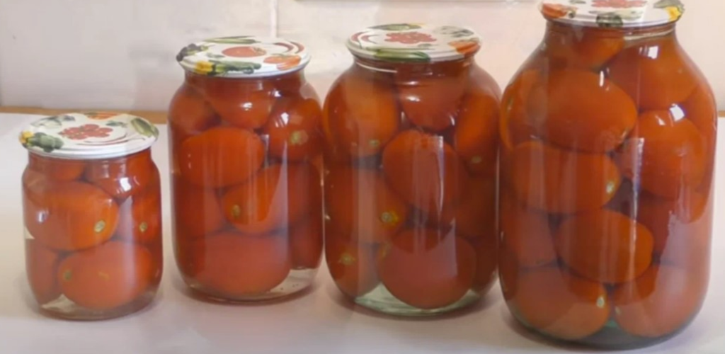 У цьому рецепті пропорції даються на один літр води, тому він дуже добре підійде, якщо вам потрібно закатати помідори за один прийом, але в банки з різним об’ємом.